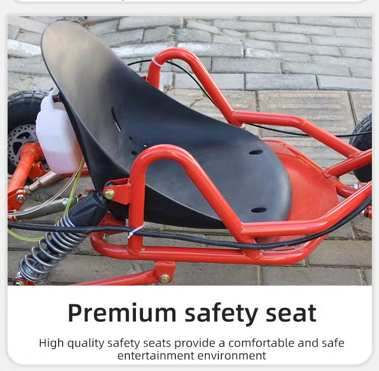 Designed with practicality in mind, the All-Terrain Off-Road Kart can be conveniently stored in the trunk of most vehicles. This feature allows you to easily transport your go-kart to any location, making it simple to take your adventures on the road. Encounter a challenging trail that your car can’t navigate? No problem! Simply unload the kart from your trunk and hit the trails.
