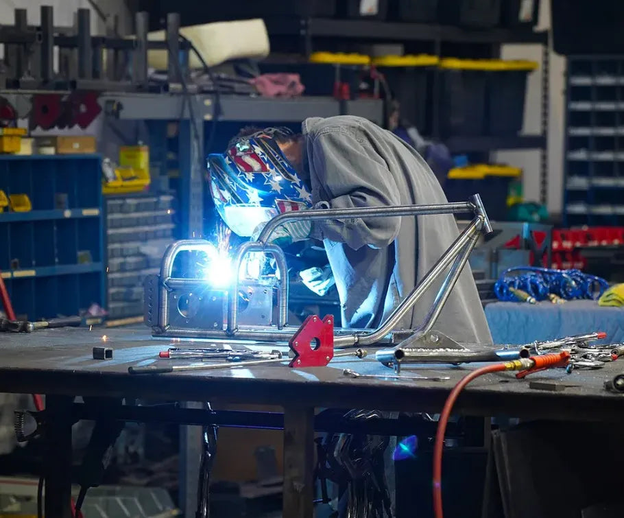 Our frames are completely made in house. The metal arrives in as raw material and every step of production is completed by Team TGV. We use the latest technology to clean, cut, bend, weld and finish the frames. Know when you order your mini trike frame you're getting best in class quality!
